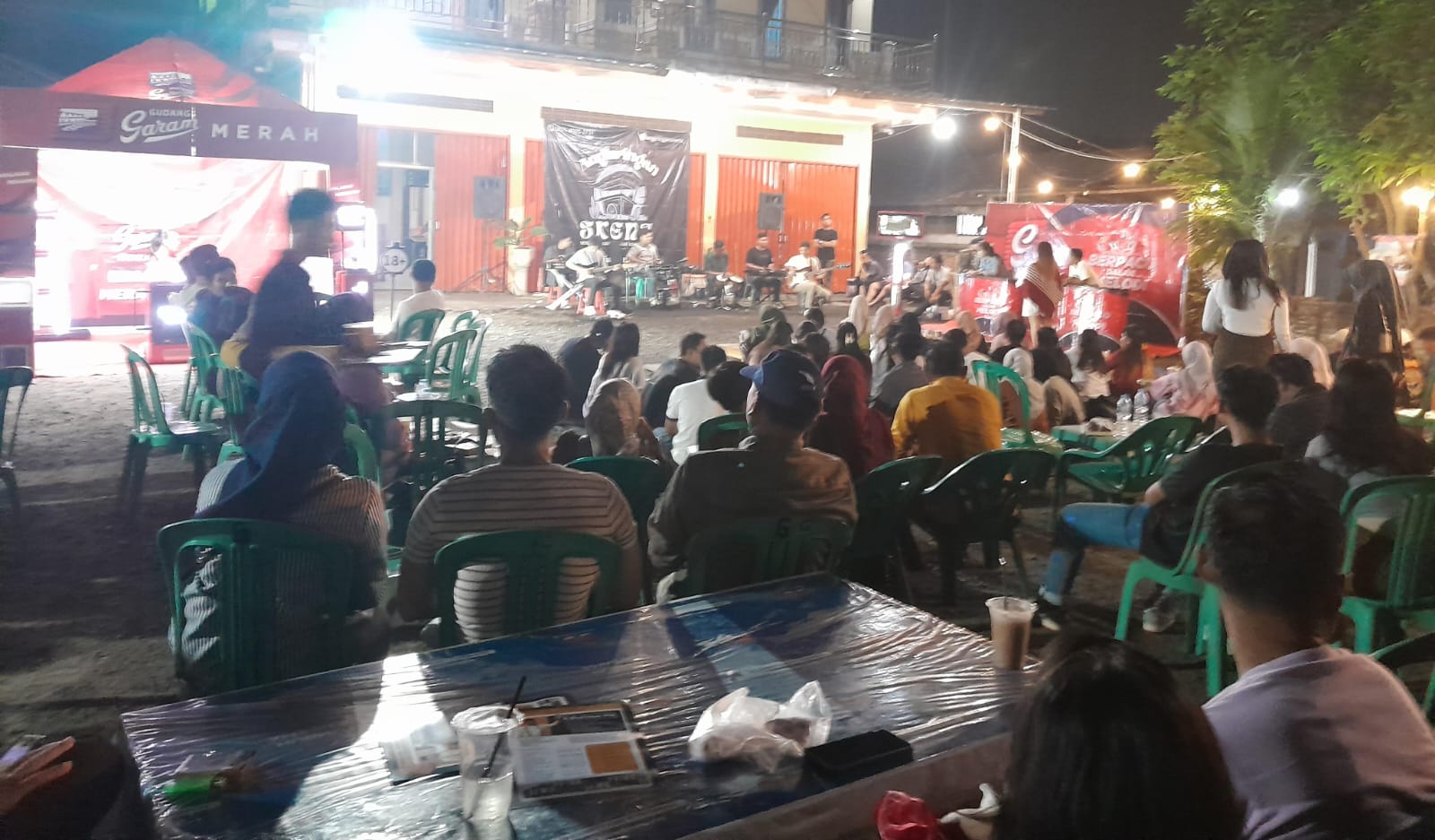 Hiburan musik angkringan skena disponsori oleh gudang garam merah dan berbagai game dan musik hiburan di sajikan di angkrinngan skena