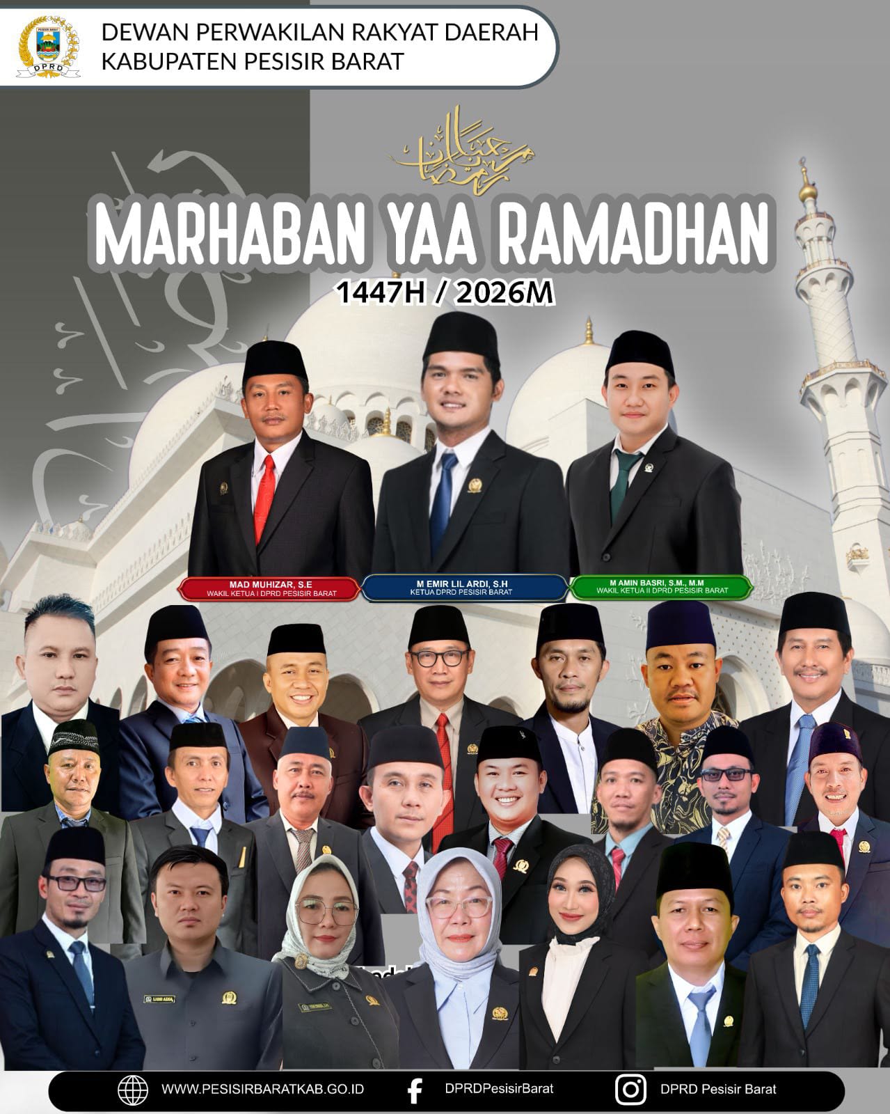 Penamerah.co.id Pesisir Barat – Keluarga besar Dewan Perwakilan Rakyat Daerah (DPRD) Pesisir Barat mengucapkan selamat menyambut bulan suci Ramadhan 1447 H/2026 M. Bulan Ramadhan menjadi momen istimewa bagi umat muslim untuk memperkuat ibadah, memperbaiki diri, dan mempererat silaturahmi.