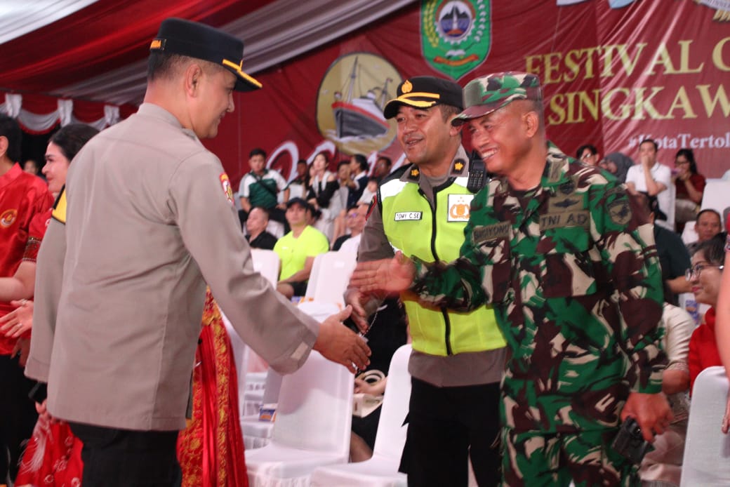“Saya dan jajaran sangat mengapresiasi kegiatan festival budaya ini, terutama Kota Singkawang sebagai The Most Tolerance City, masyarakatnya sangat antusias untuk melestarikan budaya dan bersama menjaga keamanan.”, kata Kapolda kepada awak media di lokasi festival.