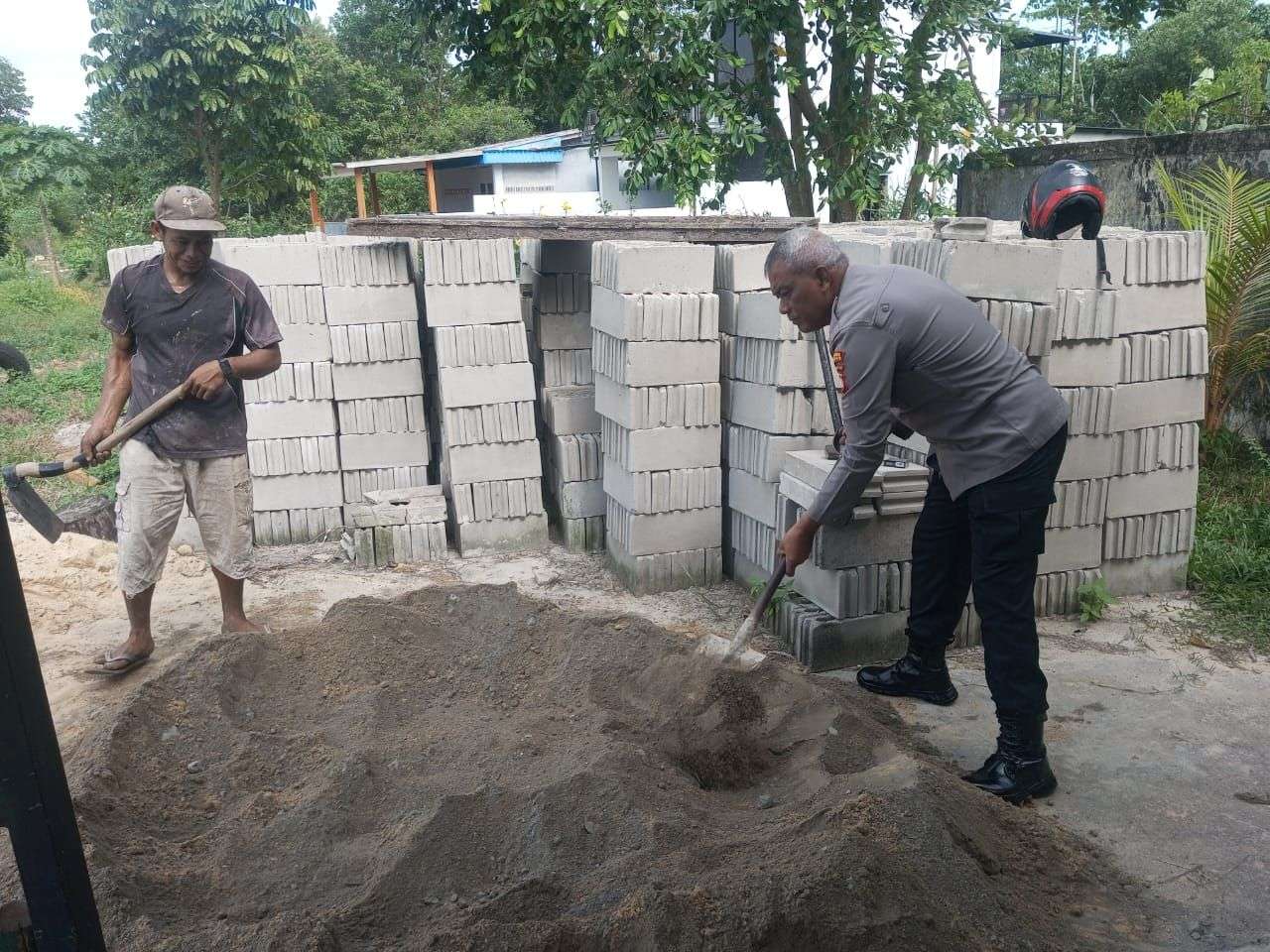 Bersama para pekerja bangunan,kapolsek singkawang selatan melakukan berbagai hal pekerjaan, dimulai dari pengangkutan material pasir,batu,semen dan juga air.