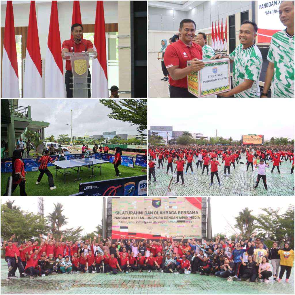 Olahraga bersama dihadiri langsung oleh Pangdam XII/Tpr Mayjen TNI Iwan Setiawan, S.E., M.M., didampingi Ketua Persit KCK XII/Tpr, Beti Iwan Setiawan, Kasdam XII/Tpr Brigjen TNI Jannie Aldrin Siahaan, S.E., M.B.A., serta sejumlah pejabat utama Kodam XII/Tpr, pimpinan media dan para wartawan baik media online, cetak maupun elektronik.