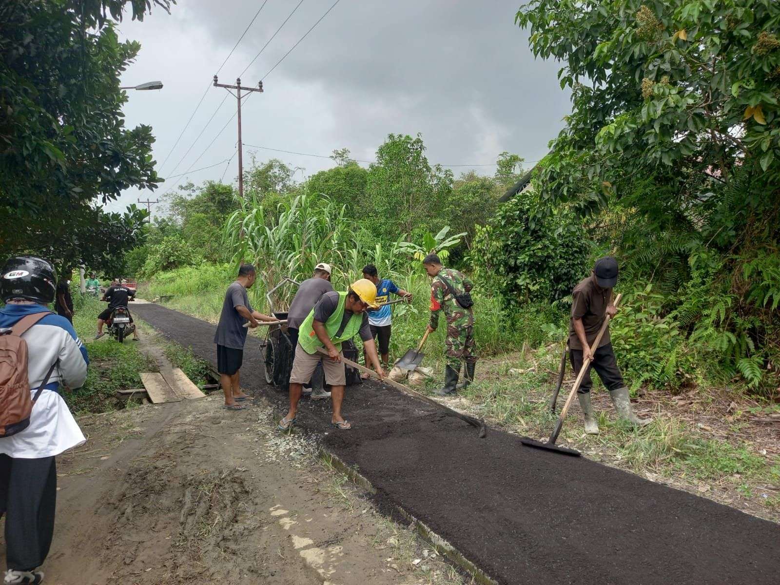 Kegiatan pengaspalan jalan gang ini dilakukan secara gotong royong bersama masyarakat setempat. Kehadiran Babinsa di tengah-tengah warga tidak hanya membantu tenaga, tetapi juga memberikan motivasi agar pelaksanaan pembangunan berjalan lancar dan tepat sasaran.