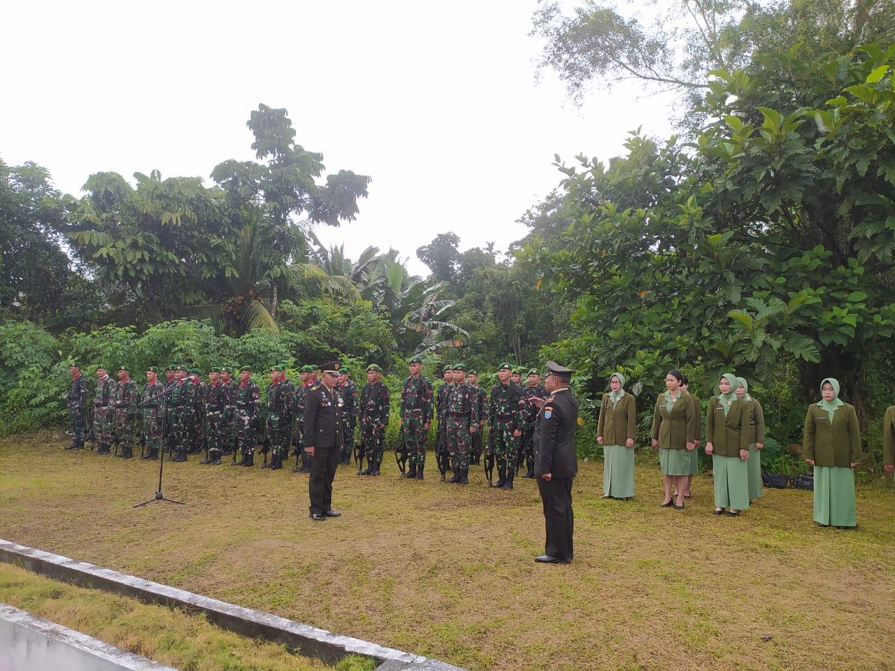 Di hadiri oleh,Pasiter kodim 1209/Bky Kapten Inf.Baharudin,Danramil 1209-06/Ledo Peltu Yopinus Wetto,Danramil 1209-02/ Sgl,Pelda Hamdani,Komandan kompi B yon zipur 6 Lettu Czi Johan Bahar.