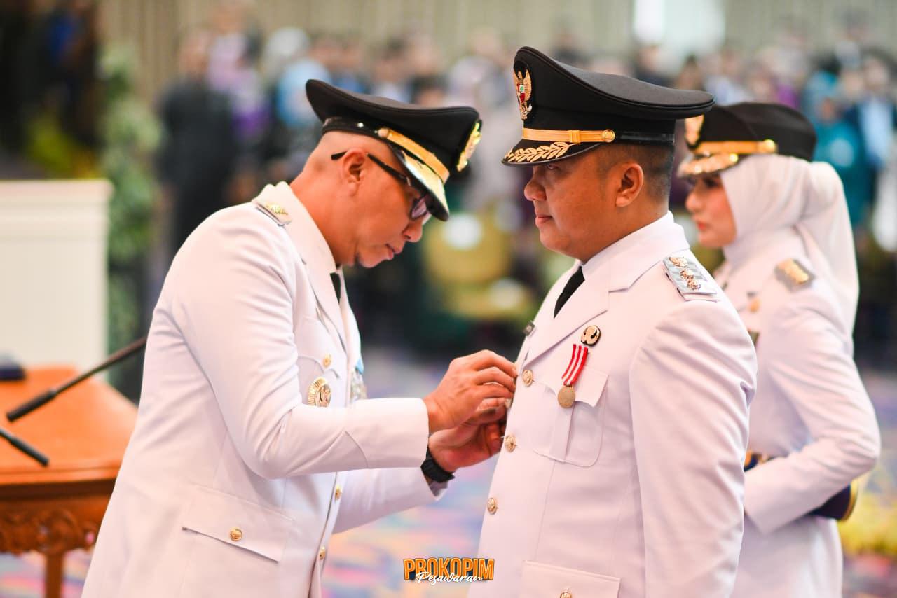 Acara dimulai dengan pembacaan Surat Keputusan Menteri Dalam Negeri, dilanjutkan pengucapan sumpah jabatan, penandatanganan berita acara, pemasangan tanda pangkat, penyematan tanda jabatan, dan penyerahan keputusan Mendagri.
