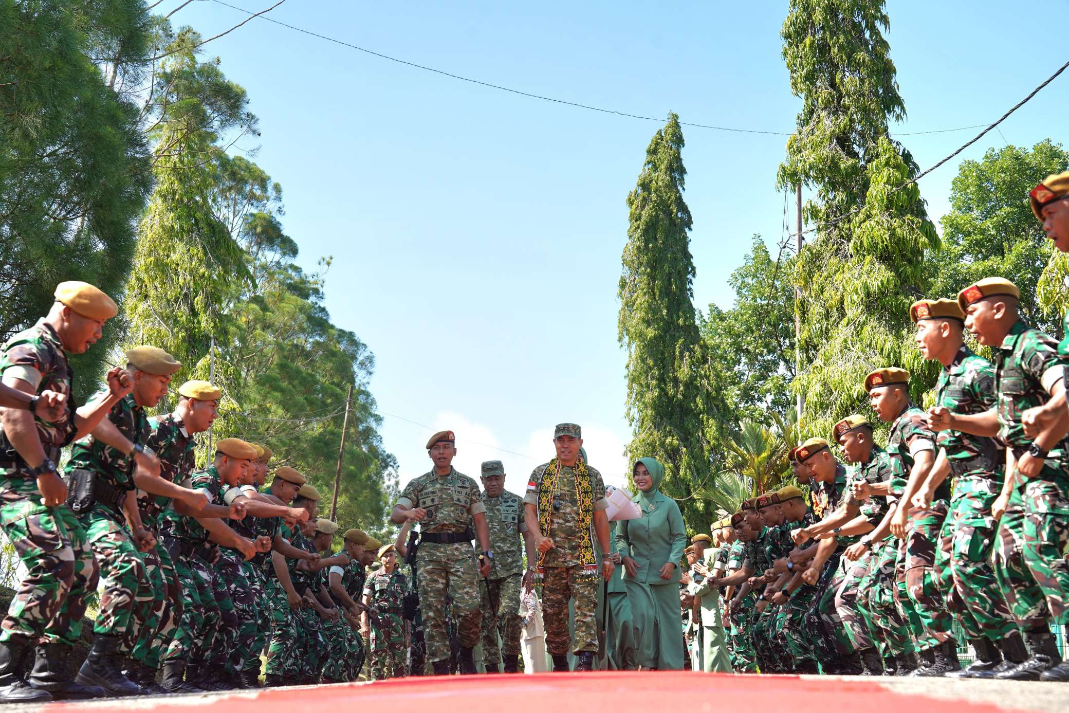 Kedatangan Pangdam XII/Tpr beserta Ketua Persit Kartika Chandra Kirana Daerah XII/Tanjungpura, Ny. Uya Novi Rubadi, disambut langsung oleh Komandan Batalyon Armed 16/TK, Letkol Arm Ari Hartono, M.I.P., M.Tr.Mil., dan prosesi jajar kehormatan dan penyambutan oleh seluruh keluarga besar satuan.