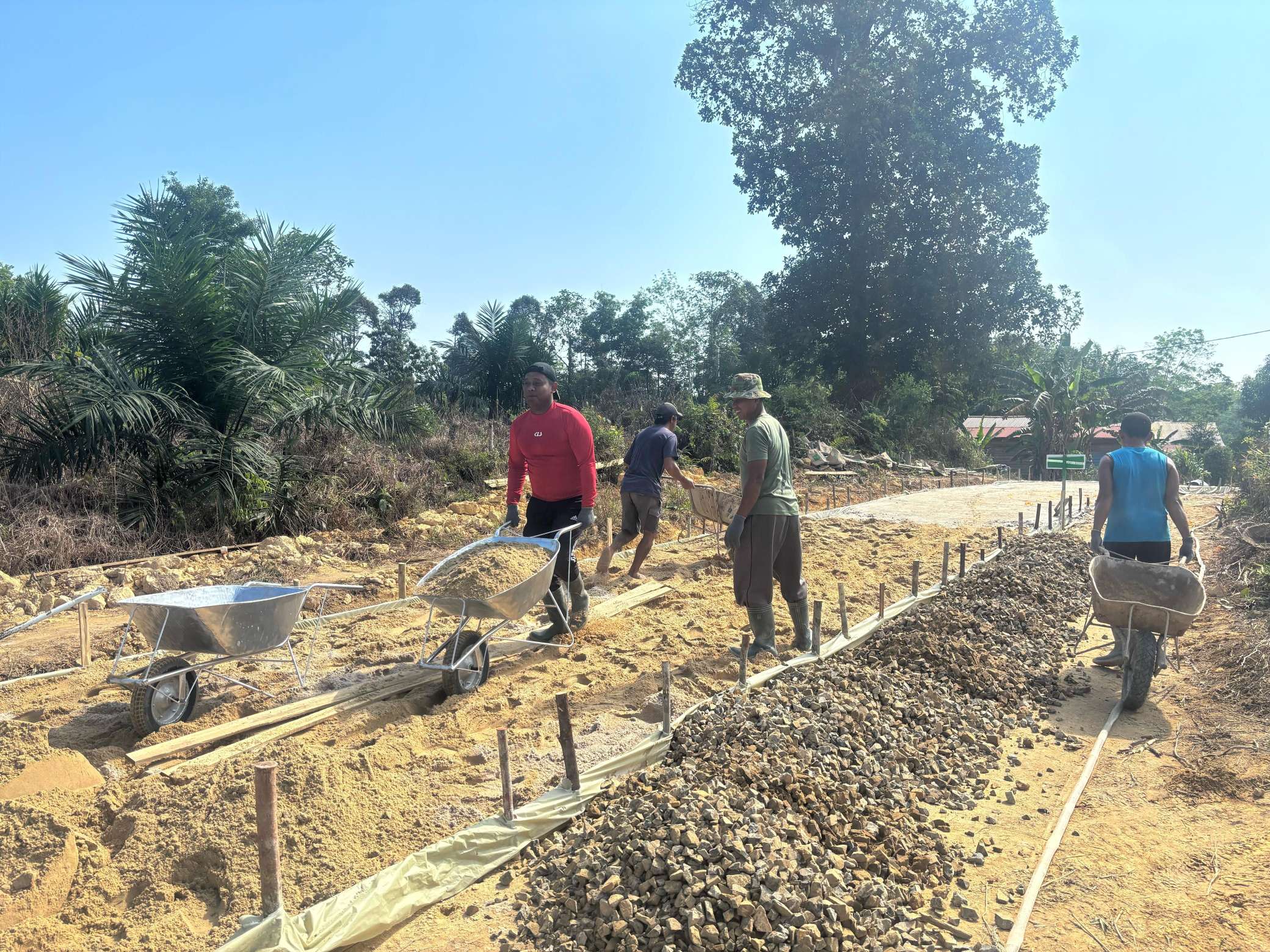 Antusiasme masyarakat sangat terlihat dari keterlibatan mereka yang secara sukarela membantu proses pengecoran, pengangkutan material, dan penataan area kerja.