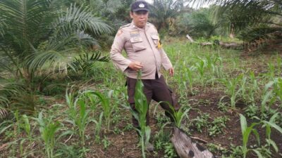 Bhabinkamtibmas dan Poktan LELAMOK RAYA Cek Progres Tanaman Jagung di Sebangki