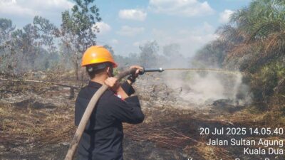 Satbrimob Polda kembali bergerak cepat merespon laporan dari masyarakat akan kemunculan api dilahan kosong di Jl. Sultan Agung Kuala Dua
