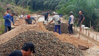 Gotong Royong Satgas TMMD Reg Ke-125 dan Warga Berbuah Manis, Progres Rabat Beton Di Jalan Gambir Hampir Selesai.